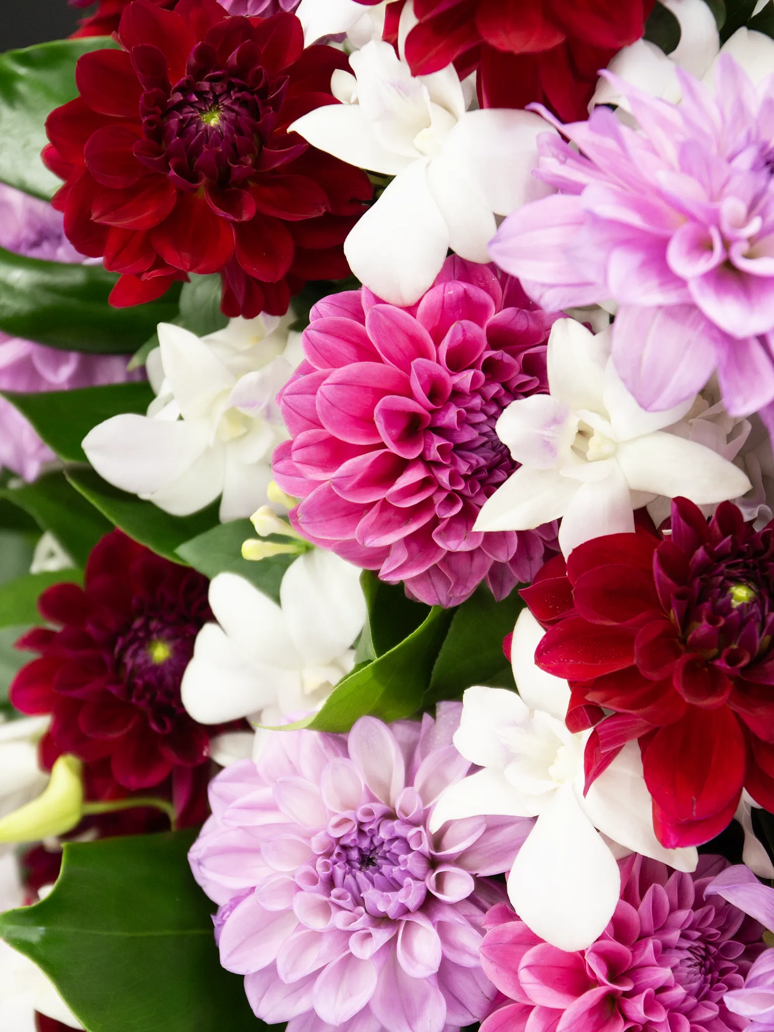 ※指定がない場合、アレンジメントは白背景、スタンド花・観葉植物等は木目背景にて仕立てます。