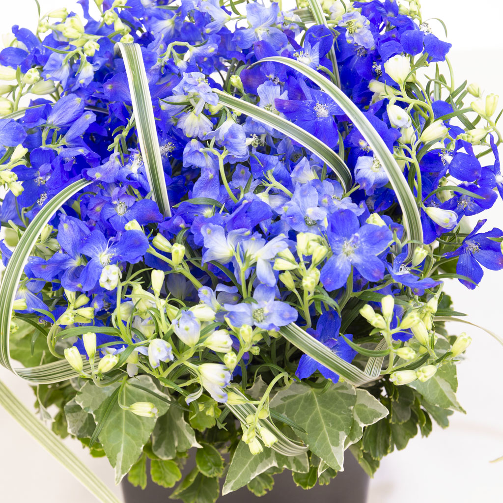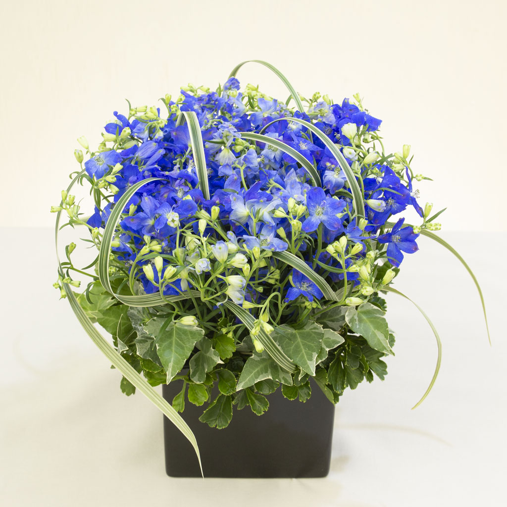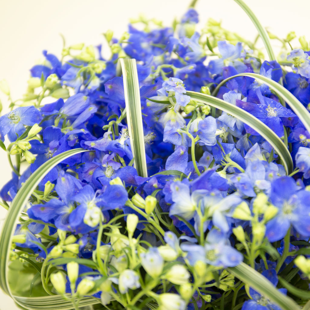 ※デルフィニウムの青色のトーンは、季節や産地により最も美しいグラデーションを持つものを厳選いたします。