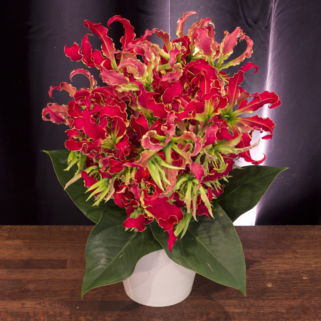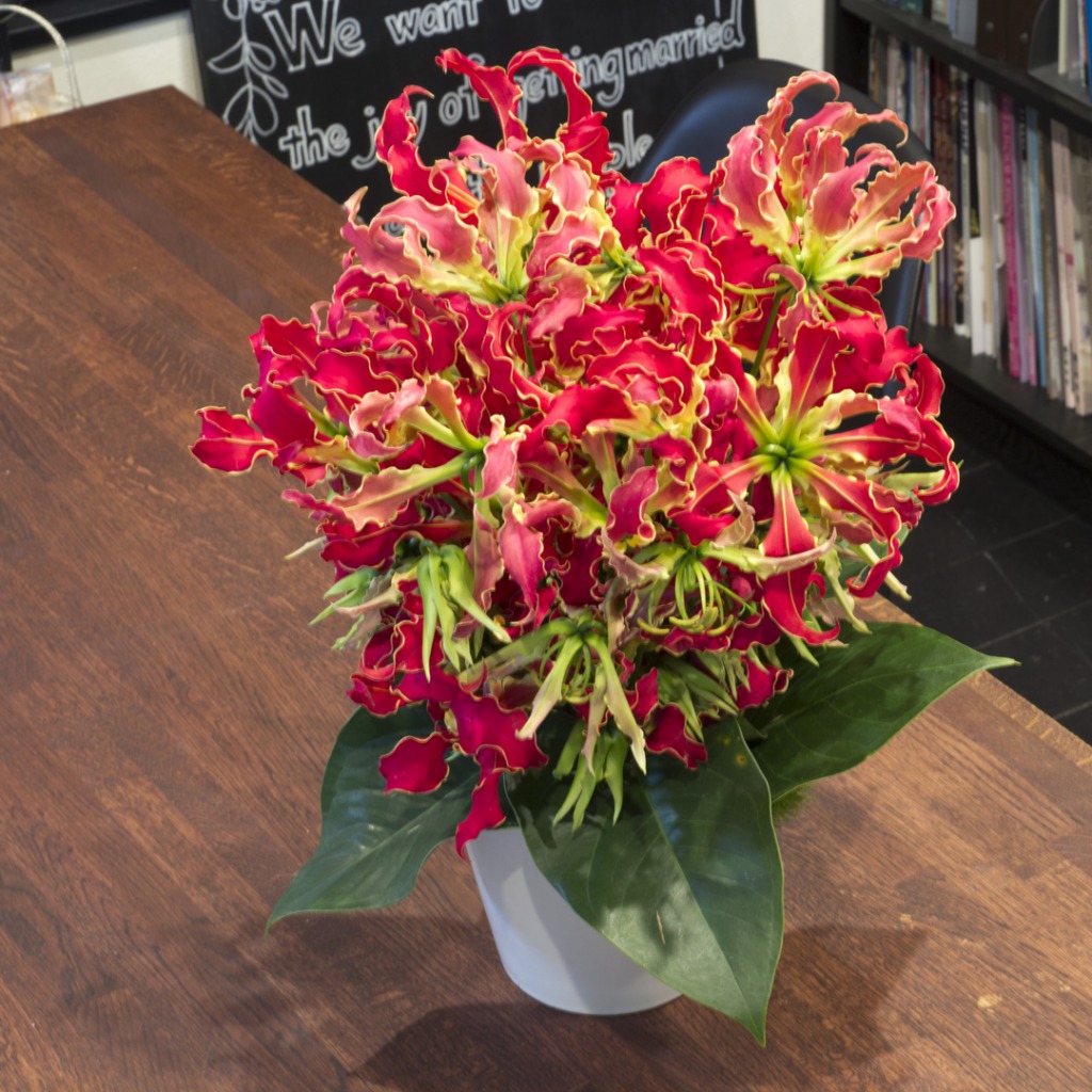 咲姿が炎のようにみえる個性的なお花「グロリオサ」のみでデザインしたフラワーアレンジメントです。