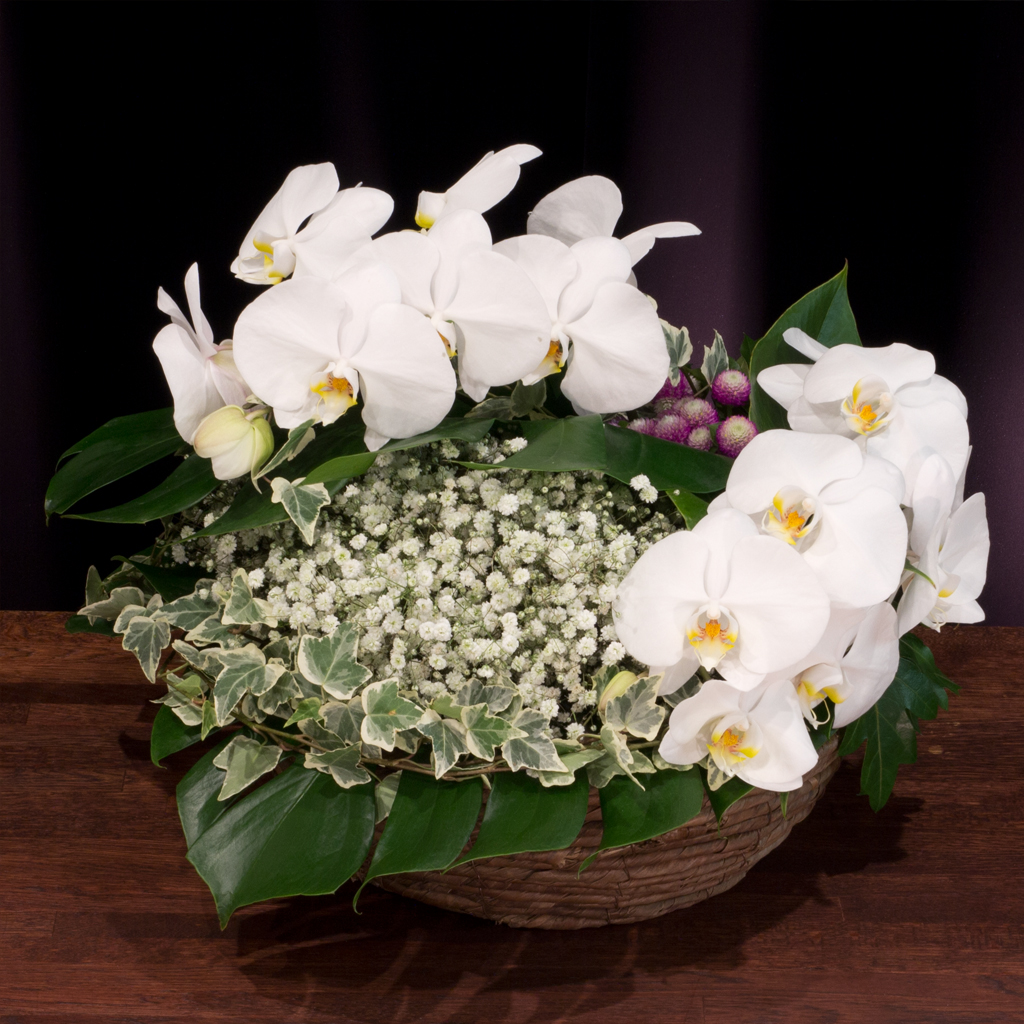 ※指定がない場合、アレンジメントは白背景、スタンド花・観葉植物等は木目背景にて仕立てます。