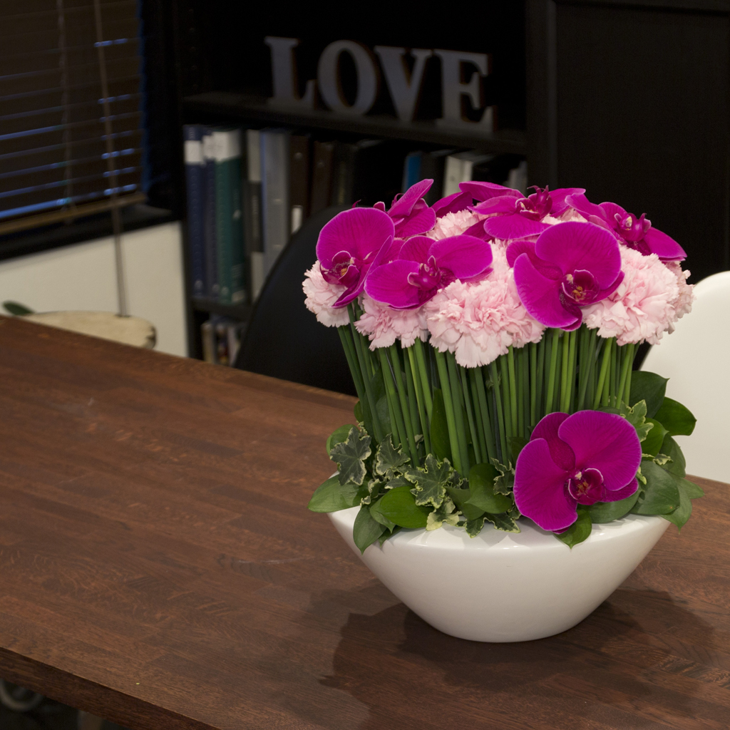 胡蝶蘭を蝶の舞う様に見立てたデザインのフラワーアレンジメントです。