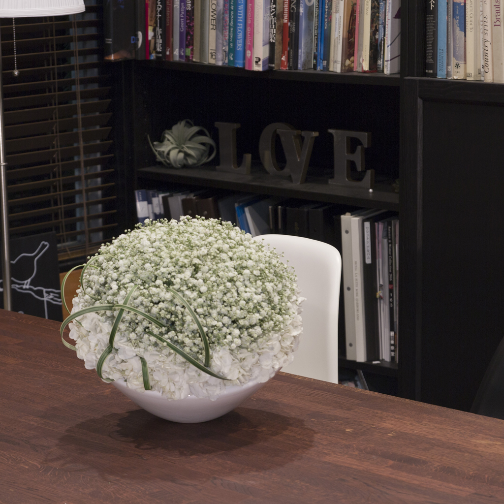 カスミソウが持つ可憐で繊細なイメージはそのままにモダンに作り上げました。
