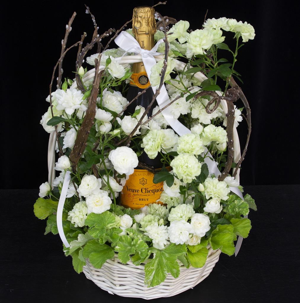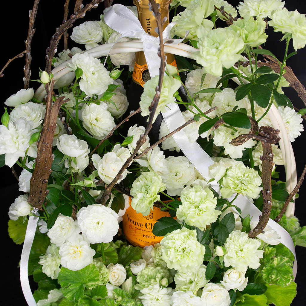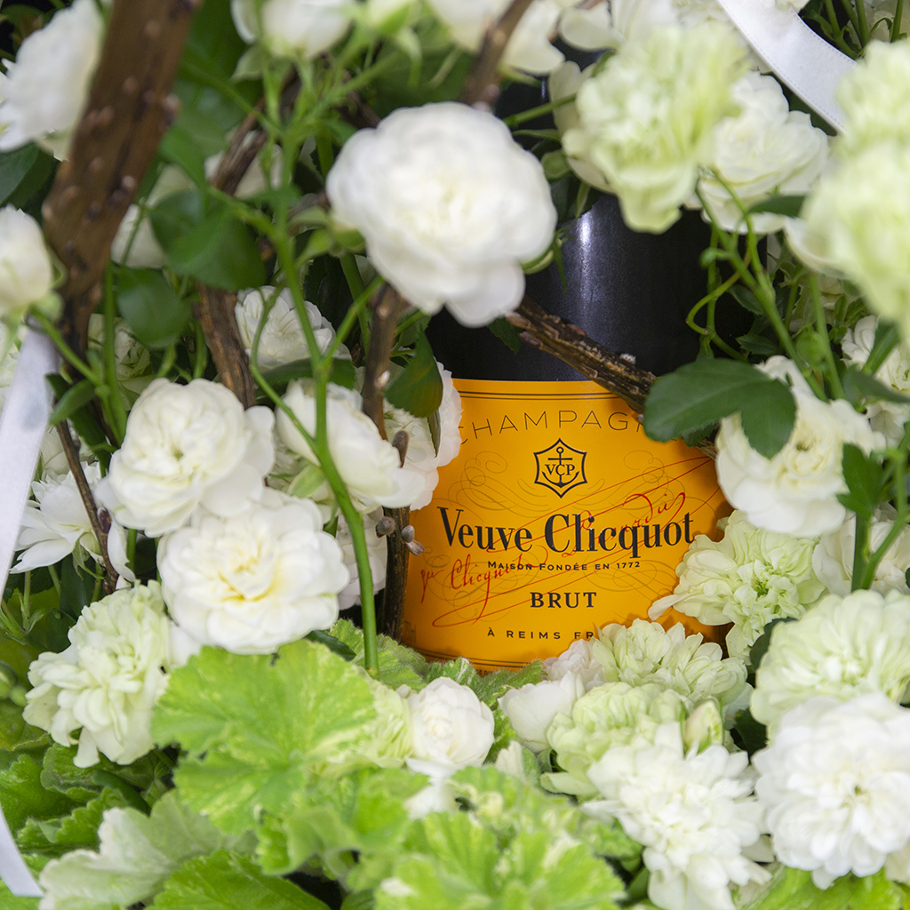 ヴーヴ・クリコ(フルボトル)とお花の人気のセットです。