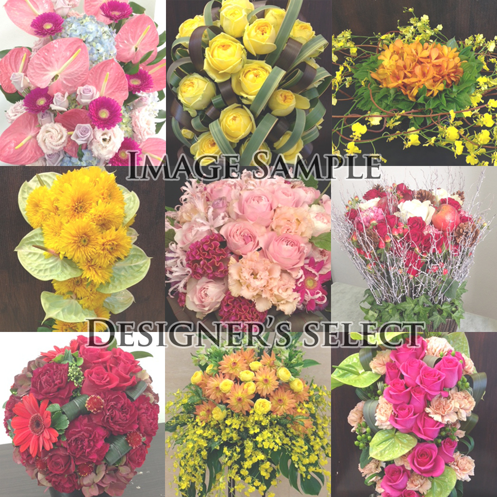 ※指定がない場合、アレンジメントは白背景、スタンド花・観葉植物等は木目背景にて仕立てます。