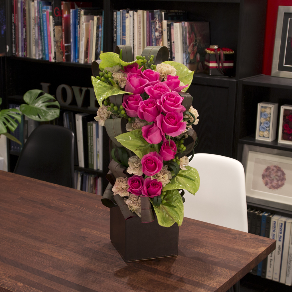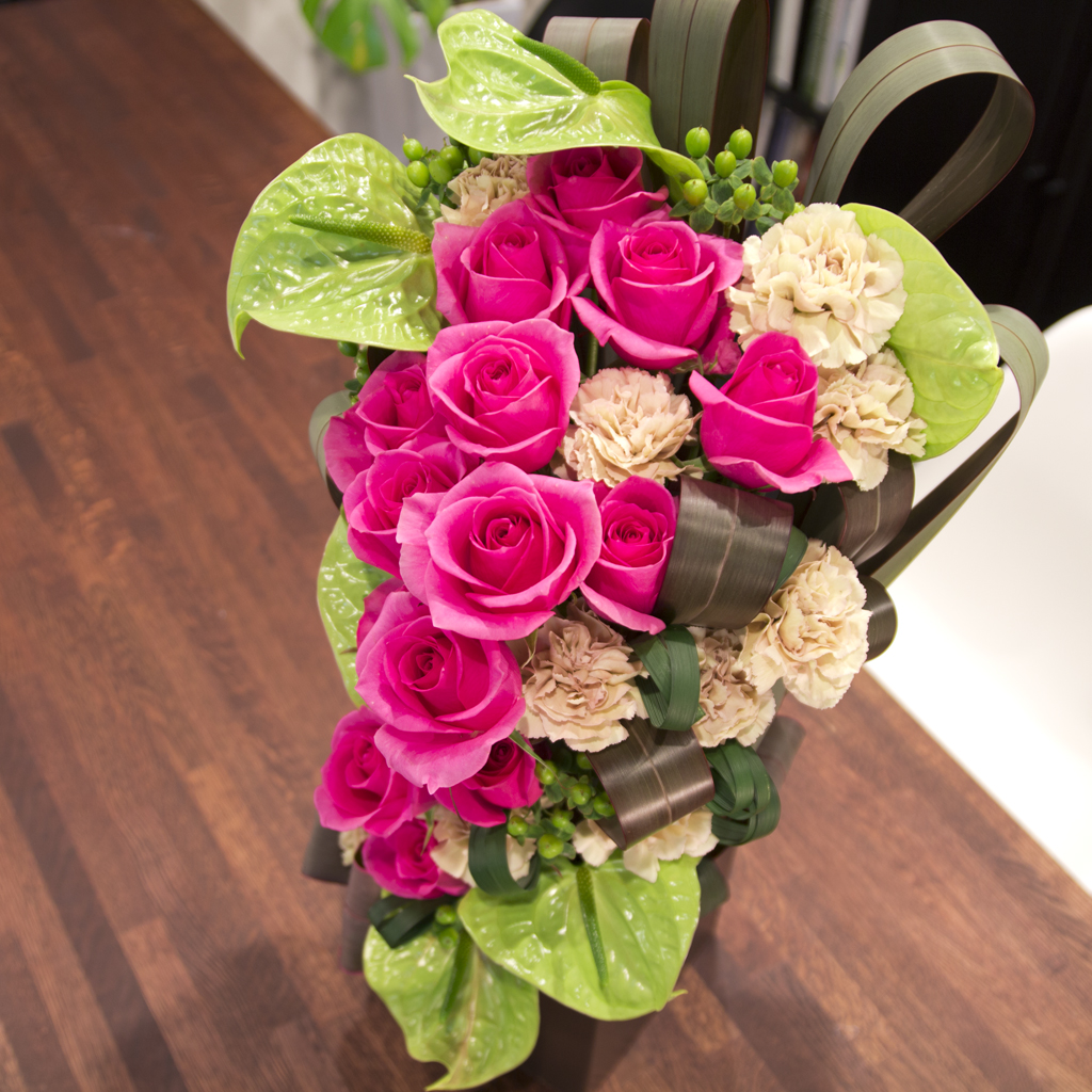 ※指定がない場合、アレンジメントは白背景、スタンド花・観葉植物等は木目背景にて仕立てます。