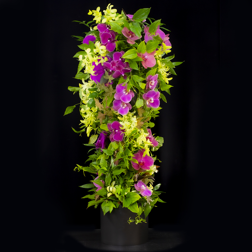 flo.danceらしいタワー型にデザインをしたフラワーアレンジメントです。