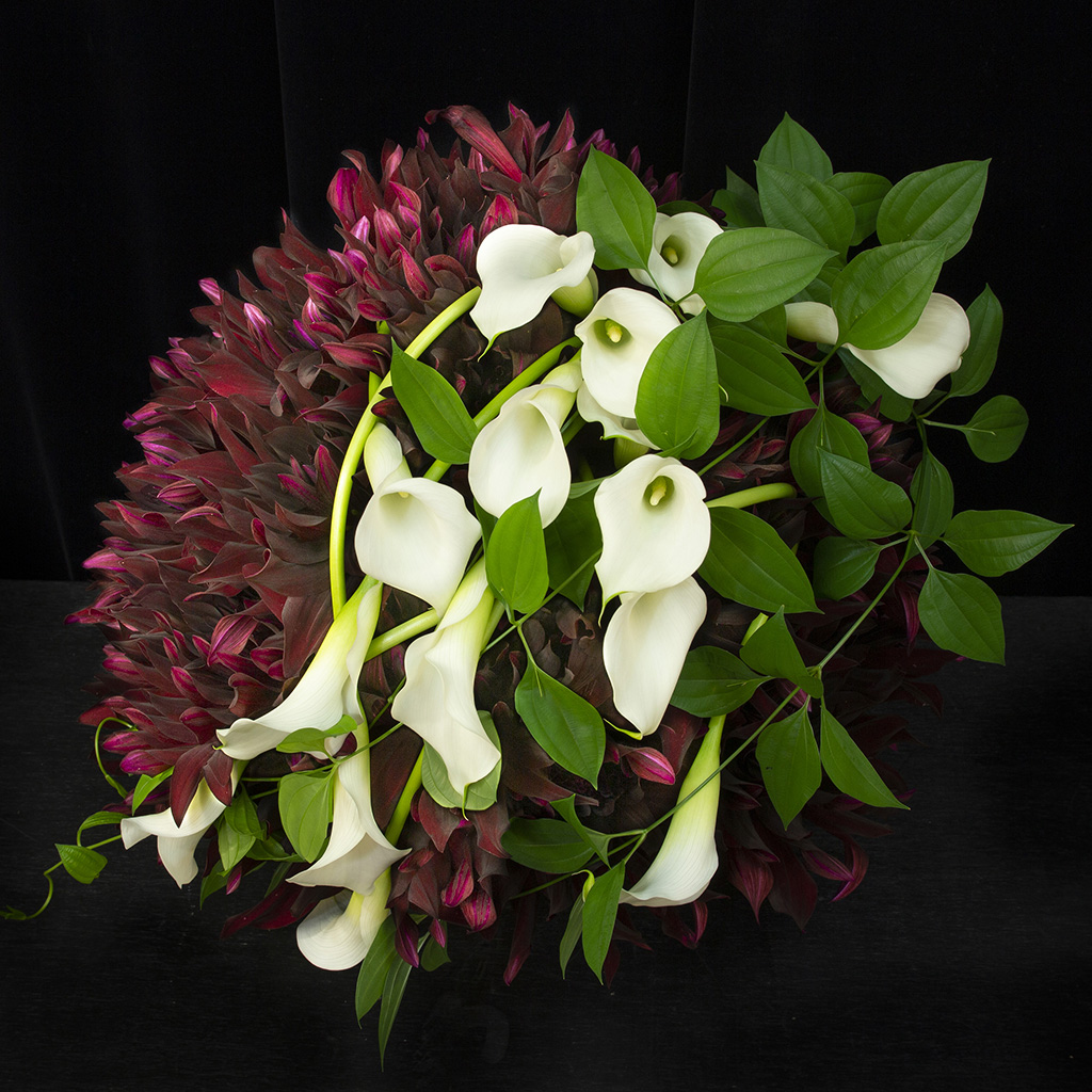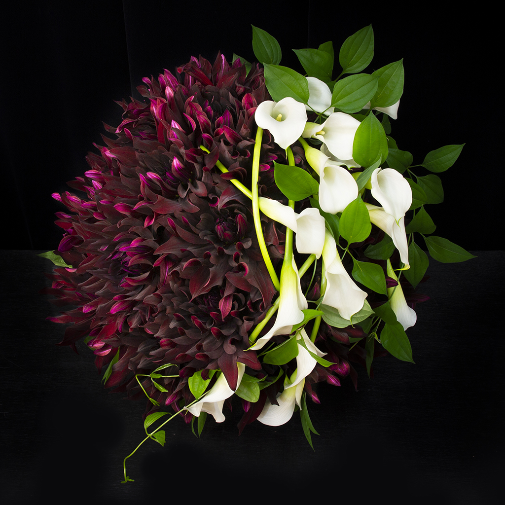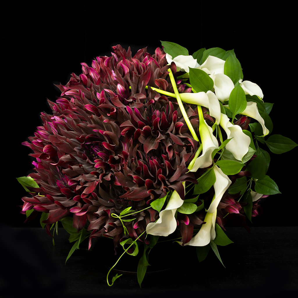 ダリアの人気品種「黒蝶」をふんだんに使用したアレンジメントです。