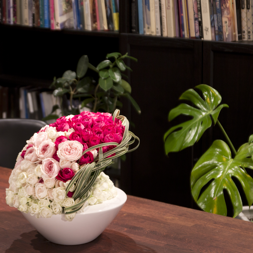 ※指定がない場合、アレンジメントは白背景、スタンド花・観葉植物等は木目背景にて仕立てます。