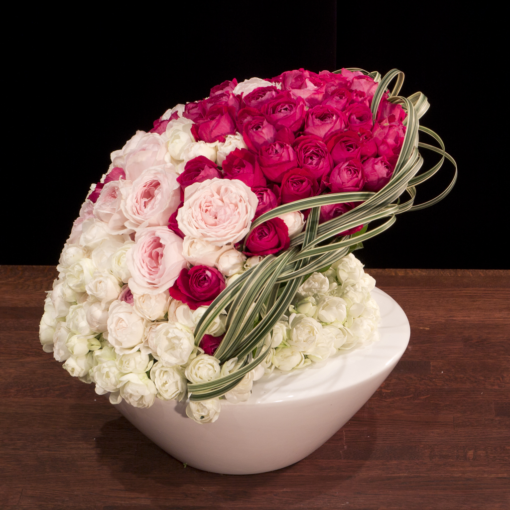 ※葉や花のフォルム、色のトーンは季節などにより多少変わる場合がございます。花器は在庫状況により変更になる可能性がございます。予めご了承くださいませ。