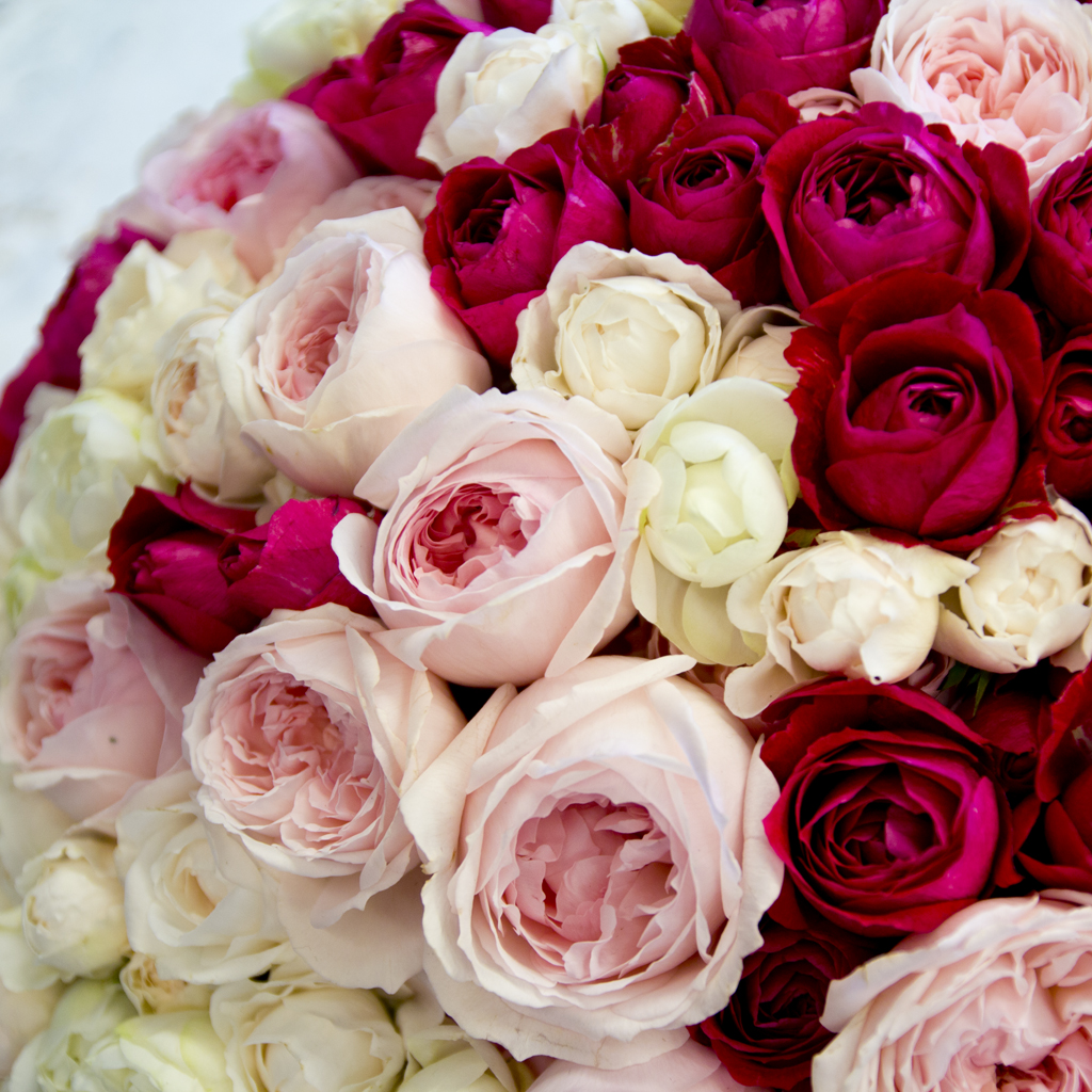 バラをふんだんに使い、個性的でやさしい女性の横顔をイメージしました。