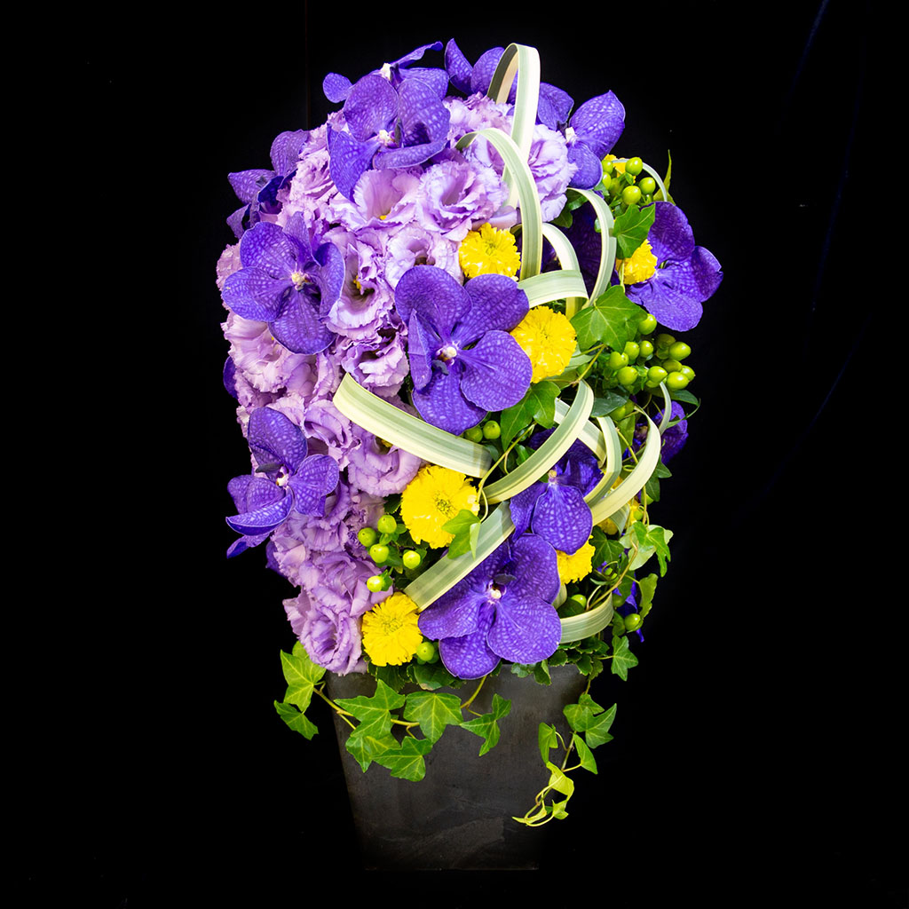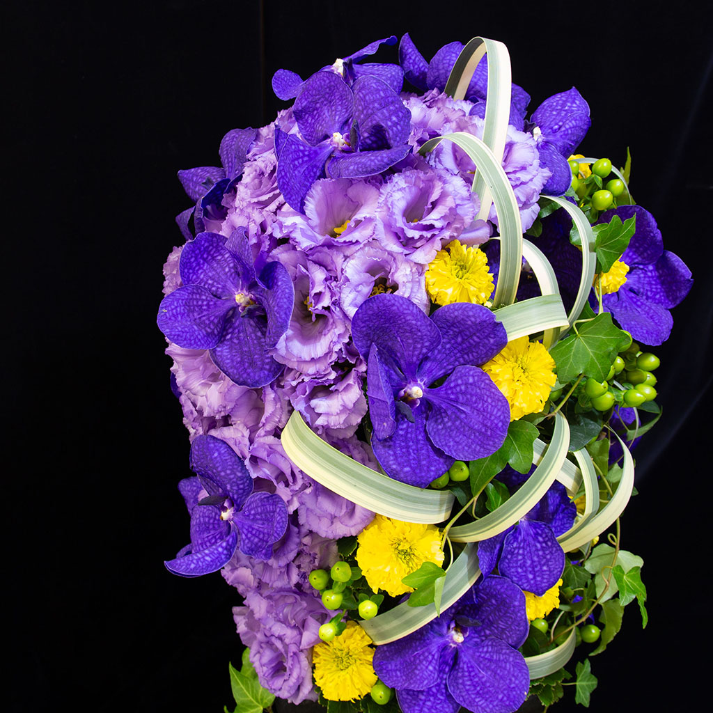 ゴージャスな見ための蘭(バンダ)とトルコキキョウの組み合わせです。