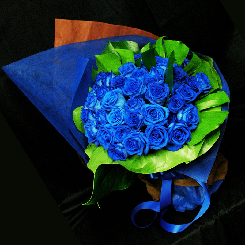 美しい青いバラを50本束ねました。 「不可能を可能にする」という意味を持つ青いバラであなたは何を伝え、何を叶えるのでしょう。